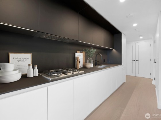 A $100K parking stall is included making this unit the best value with the best layout and the best views. This residence offers it all—breathtaking water views from every angle, unmatched proximity to the Amazon Spheres, and one of the building’s most versatile layouts with the option to seamlessly open or enclose the one bedroom space. Enjoy high-end motorized blinds, custom B&B Italia cabinetry, Kohler fixtures, quality designer's touches and premium finishes. The state-of-the-art building features a rooftop cantilevered pool, jacuzzi, a rooftop secret garden, spa, pet runs, resident's lounges for effortless living. Must see.