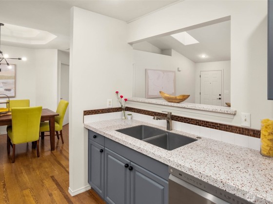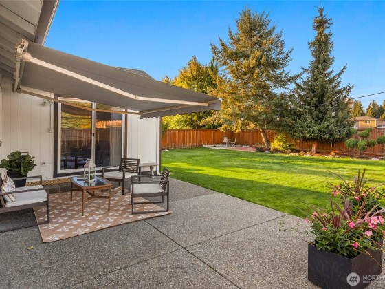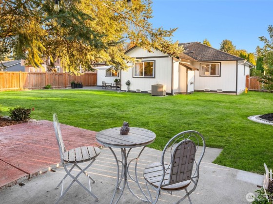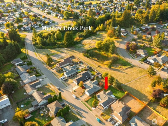 You'll love this 3-bedroom gem! One-level living at its best w/fresh updates, gleaming hardwoods, vaulted ceilings, open concept floor plan, full primary suite, skylights, fireplace & air conditioning. The spectacular lot is perfect for entertaining with 2 large patios, and a flat grassy back yard that is fully fenced & backs to Meadowcreek Park. A retractable awning helps you to enjoy sun or shade on the expansive patio just outside the family room. And there's plenty of room to create your own gardens...or enjoy open space for games & play! You'll have loads of storage inside plus a 2-car garage. This home is cheerfully light & bright and enjoys the convenience of easy access to shopping, schools, parks, etc. Preinspected...don't miss it!