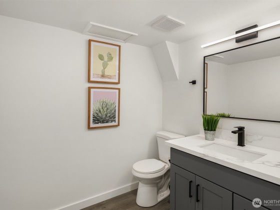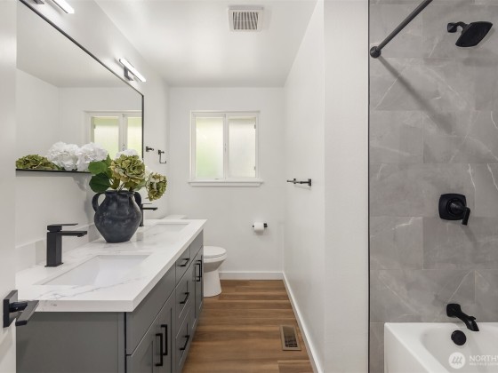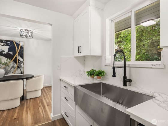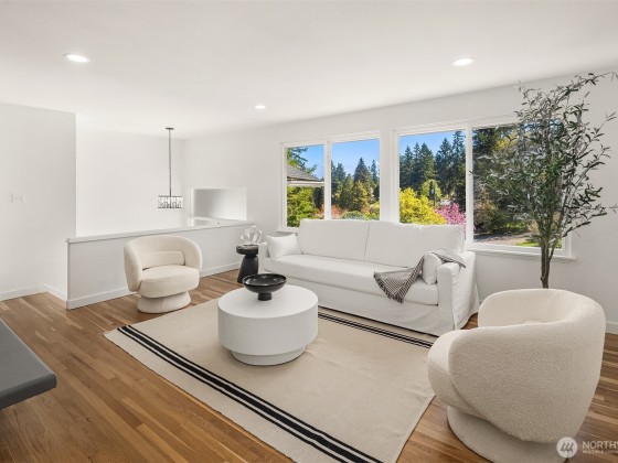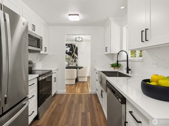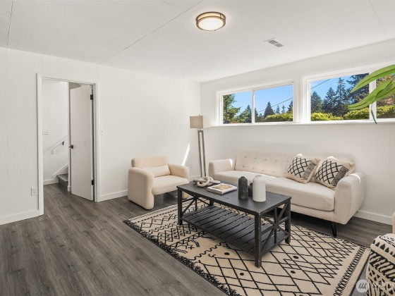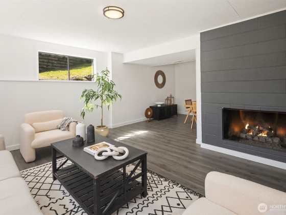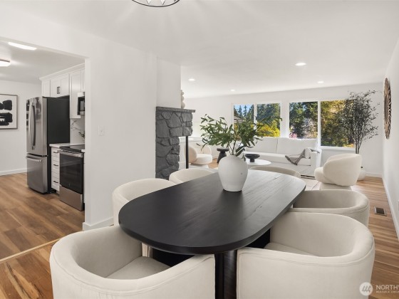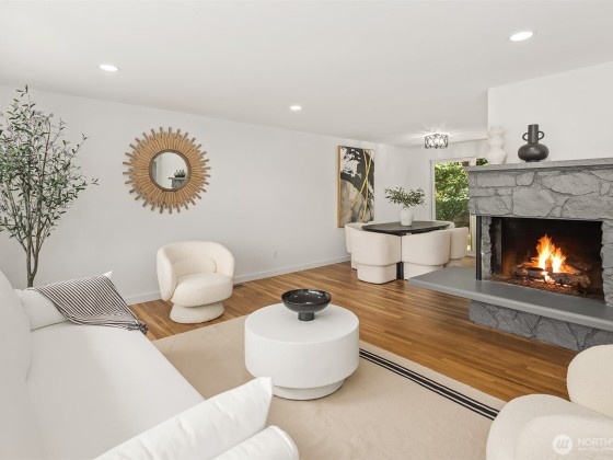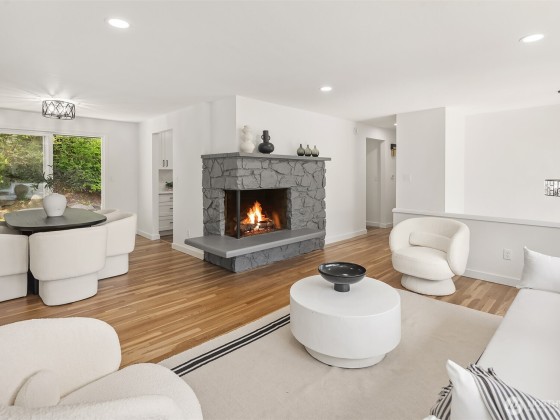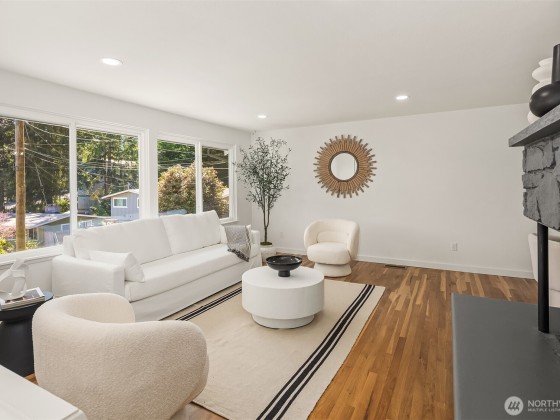 Tucked away on a quiet cul-de-sac at vibrant border of Seattle & Shoreline, this beautifully renovated residence offers a true turn-key living. Step inside to a light-filled interior where every detail has been meticulously curated. Brand new kitchen w/timeless white shaker cabinetry, quartz countertops, farmhouse sink & SS appliances. All bathrooms are tastefully remodeled w/designer finishes. Sunlit living room w/fireplace, 3 spacious bedrooms & rec room on lower level w/2nd fireplace. Additional recent upgrades include, newly refinished hardwood floors, new LVP flooring, new interior & exterior paint, gas furnace (2024), newer roof. Sought-after Shoreline SD. Minutes away from LR station & highways. Close to all amenities. Pre-inspected!