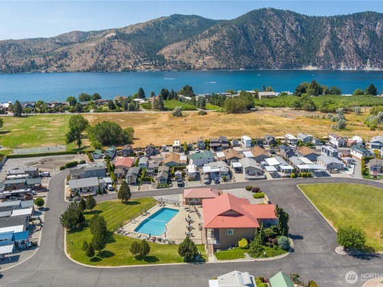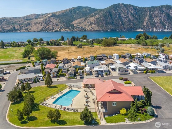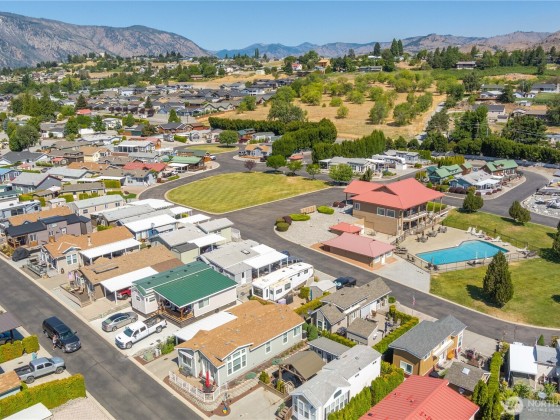 55+ Resort Community Living at Lake Chelan. Only a couple blocks from downtown Manson with shopping, dining, marina,& wine tasting. Desirable location by the clubhouse but not subject to the noise. This 390 sqft Park Model has the notorious “Chelan Room” and Bedroom which is 275 sqft; which is no longer allowed to be built. Shed with A/C. Multiple living spaces, kitchen atrium style dining, 2 bedrooms one with closet & spacious 3/4 bathroom. There is a large composite deck partially covered and large carport. Vaulted ceiling throughout. The Community amenities include the pool, exercise room, & clubhouse. New luxury vinyl plank flooring, lighting throughout and refreshed kitchen cabinets. *Subject to HOA verification.
