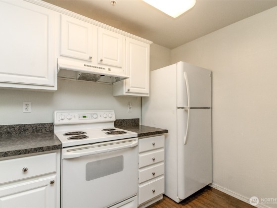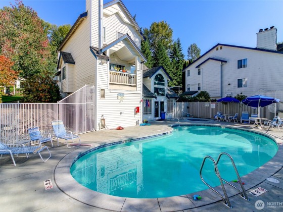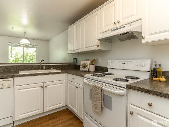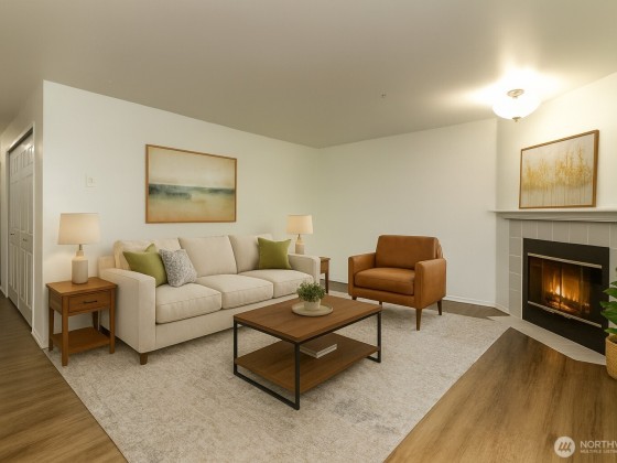 Welcome to Nautica by the Lake! This pet-friendly 2 bed/2 bath is perched above Lake Washington, in a peaceful tree-lined setting. This unit features a no-stairs entry & hard-surface flooring throughout. Kitchen includes ample storage & counter space. Open concept dining & living room w/wood burning fireplace for cozy nights at home. West-facing private deck welcomes in afternoon sun. Recreation building features fitness center, game room, kitchenette & outdoor pool & hot tub! Full sized washer & dryer in unit. 1 covered assigned parking space, plus plenty of visitor parking. No rental cap. 2025 special assessment paid in full by seller. Ideal location for easy commute in any direction, with plenty of shopping & waterfront parks nearby.