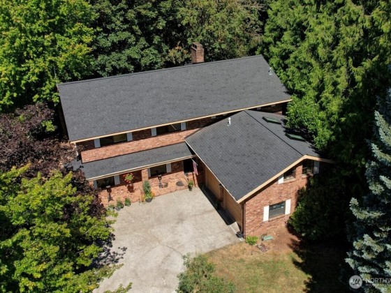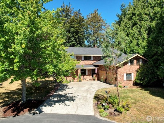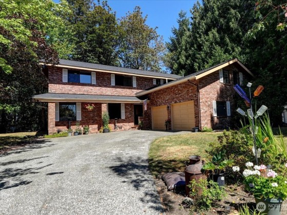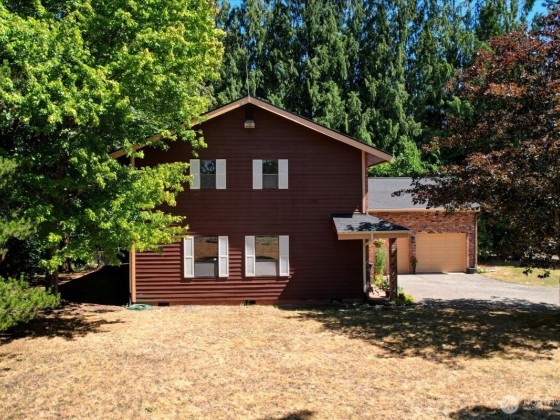 This spacious 5-bedroom home sits near the end of a private culdesac on 1.4 acres, offering a perfect blend of privacy & convenience. Inside are a living room, dining room, family room, & versatile bonus room—think home office, hobby room, gym? Recently painted inside & new LVP flooring for easy care. Heatpump for A/C! With its classic brick front & surrounding yard sitting on ~3/4 acres, there's plenty of space for play, gardening, or just peaceful lounging. Add'l ~3/4-acre drops off behind the home to your wooded private retreat + neighboring acres of forest. Greenhouse & shed are included for all your gardening and storage needs. RV, garage & off-street parking too. Minutes to I-5, making commuting a breeze! Priced well below tax value!