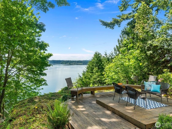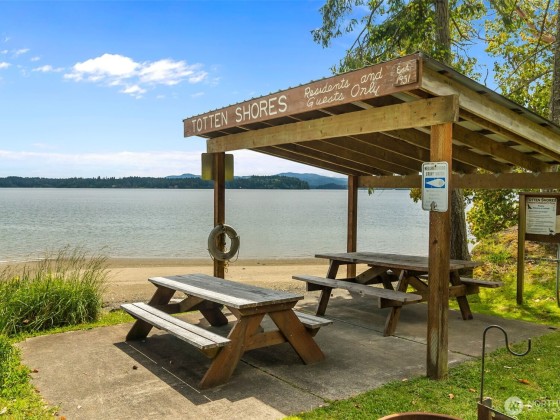 Dreaming of peaceful waterfront living with your own private stretch of sandy beach? This charming home offers 55’ of Puget Sound waterfront with included tideland rights. This 1,100 sq ft 2-bedroom main home features baths on both levels & sunlit living spaces with breathtaking water views. Enjoy your morning coffee on the deck as you take in the sights of eagles, whales, other marine life, & gentle waves lapping the shoreline. A detached 2-car garage includes a spacious 640 sq ft studio apartment-ideal for guests, multigenerational living, or long-term rental income. Located in sought-after Totten Shores with access to a community beach, boat launch, & park. This is waterfront living at its best & no HOA! 30-year roof installed in 2020.