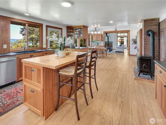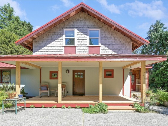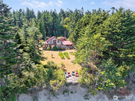 Experience the magic of island living on this rare 5-acre retreat on coveted Marrowstone Island. Timeless country charm meets serene waterfront in this 2 bed, 2 bath home with sweeping views of Admiralty Inlet from nearly every room. The light-filled great room features wide-plank hardwoods that flow to the dining area, chef’s kitchen, and sunroom that showcases the ever-changing maritime landscape. Upstairs, the expansive primary suite offers sunrise vistas, a walk-in tiled shower, and generous closet. Enjoy lush gardens, fruit trees, and the rhythm of waves—just minutes to Nordland, a winery, and state parks. A detached garage/workshop with a guest studio above adds flexibility for guests or creative pursuits.