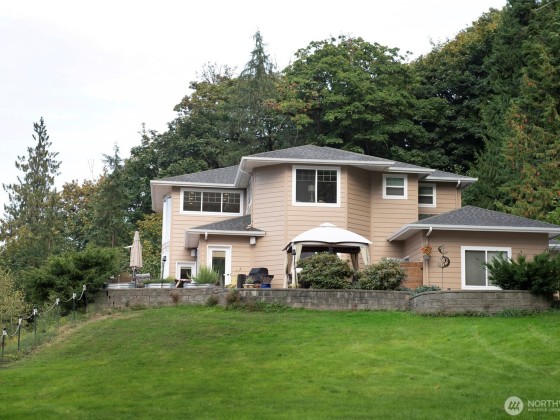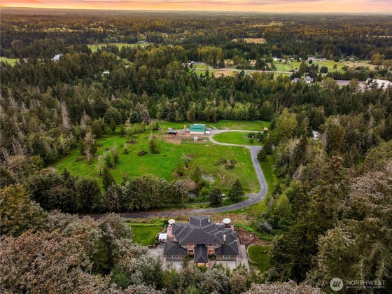 Discover serene living just minutes from downtown Bellingham at this exceptional 5-bedroom, 4.25-bath estate. Set on 20 private acres, the home offers sweeping mountain and territorial views from nearly every room, creating a peaceful, retreat-like ambiance. An expansive deck invites outdoor living with panoramic views of rolling pastures, a serene pond, and a 6-stall monitor barn—complete with a beautifully remodeled upper level, perfect for a bonus room, office, or guest space. With R5 zoning, two separate addresses, and direct access to riding trails, this property offers incredible flexibility and future potential.