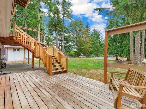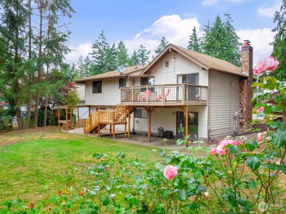 Here's your Silverdale Stunner in a premium location! This impeccably maintained home sits on a quiet cul-de-sac just steps from CK Middle and CK High Schools. With its cheerful curb appeal and spacious, level lot, this solid home offers a happy lifestyle. Recently added interior paint, baseboards, trim, doors, and fixtures + tasteful updates in the bathrooms and kitchen. RV parking, a powered shop, beautiful landscaping, and a fully fenced backyard. Inside, the sunny living room opens to an entertainment-sized deck, while the expansive lower-level family room features a wood stove & slider to a shaded, covered patio. Live comfortably year-round with your heat pump, A/C and wood-burning fireplace and stove. Oversized two-car garage. No HOA.