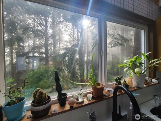 Delightful architectural gem in the exclusive coastal forest of Iron Springs. A mere 5 minutes from Seabrook for convenience to amenities, yet tucked away in a private wonderland. Sitting on a secluded ¼ acre w/ the perfect blend of space & location. Mature forest in every direction & stunning ocean views. Climb the vertical ship’s ladder to the crow's nest & soak in the ocean view. Work from home in one of two view-lofts. Entertain in the open, airy main level flooded w/ natural light. Cozy wood stove, exposed chimney, glu-lam beams, clerestory windows & soaring ceilings. A dramatically vaulted upstairs primary & a lower-level w/ bonus room, two more beds & a 2nd bath. Decks off each level. New Roof, Ext. paint & a host of other upgrades!