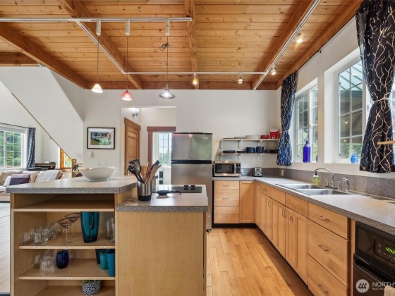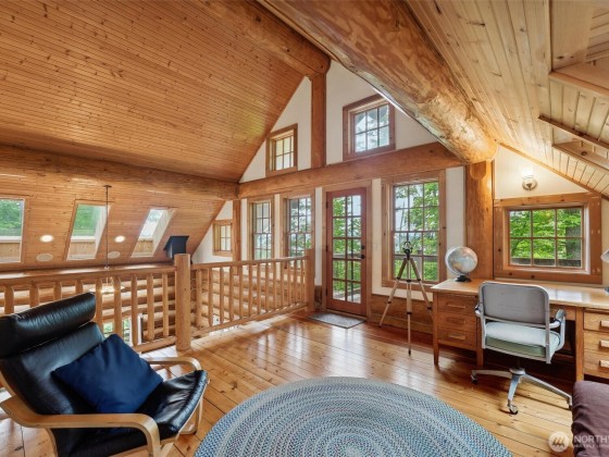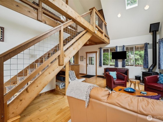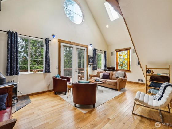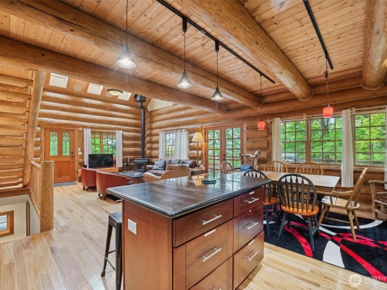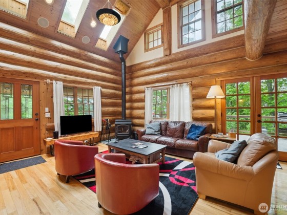 A truly incredible & unique view property with a custom-built log home, separate guest house, & detached garage/workshop. Meticulous attention to detail & design shine throughout. The beautiful & bright log home has 3 bdrms, 2 bths & loft in its own private setting on the 2.26-acre property. The open concept living space opens to the expansive deck, with views of Saratoga Passage & the Olympics. The daylight basement provides 1,152sqft of extra insulated space. The 1,513sqft ADU has a kitchen, living room, bthrm, loft & private outdoor space. STR potential! The detached garage is perfect for a studio or shop. Close to 2 state parks, boat launch & all amenities. The perfect Island getaway, potential source of income, or place to call home.