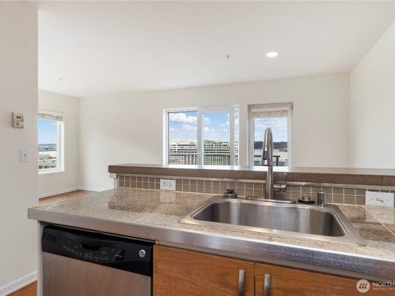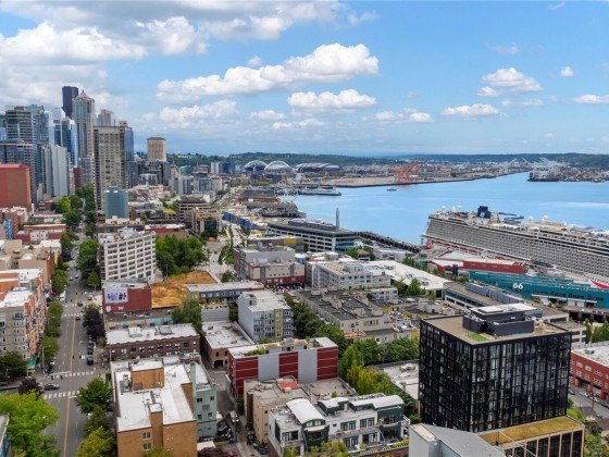 Prepare to be captivated. From the moment you step into this top-floor, west-facing 2-bedroom home at the iconic Site 17, you’re met with breathtaking 180-degree views of Puget Sound and the Olympic Mountains—sunsets here are unforgettable. The modern-industrial design blends perfectly with fresh paint and new flooring, while the open layout invites connection and makes entertaining effortless. Step outside to the rooftop deck and feel your stress melt away. Just blocks from Pike Place Market, Sculpture Park, and world-class dining, you’re at the heart of it all—yet above it. Enjoy an oversized parking spot, extra storage, on-site management and gym. No rental cap means freedom and flexibility. Welcome to the view you’ve been waiting for.
