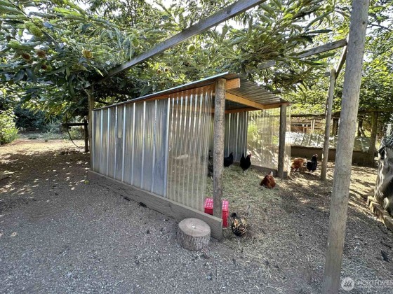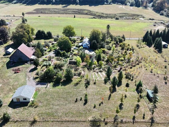 Practicing organic fruit and vegetable farm on 5 acres with a 1940's farm house, complete with basement for storing canned goods. See the "fruits" of your labor here, 3 nut trees, 13 variety of berries including red, yellow, black rasp, strawberry, blackberries, gooseberries, blueberries, elderberry, lignon berries and cherries. 7 varieties of Plum, 2 pears and 2 Asian pear trees. GRAPES for table and wine! Asparagus beds, garlic, horseradish, all the annual vegetables can name are here and thriving. The chickens have a villa! Multiple coops, seperate yards and happy birds.Enjoy the extra large patio with a view of the cozy shaded arbor, the private back deck of the main bedroom or the potters art studio,maybe a woodworker?More info