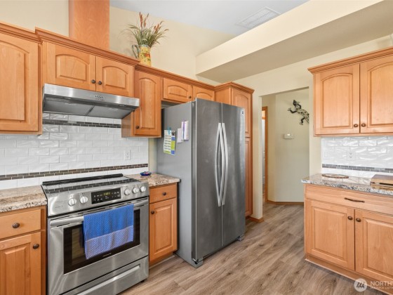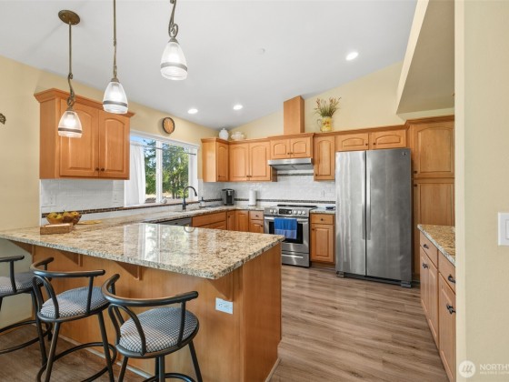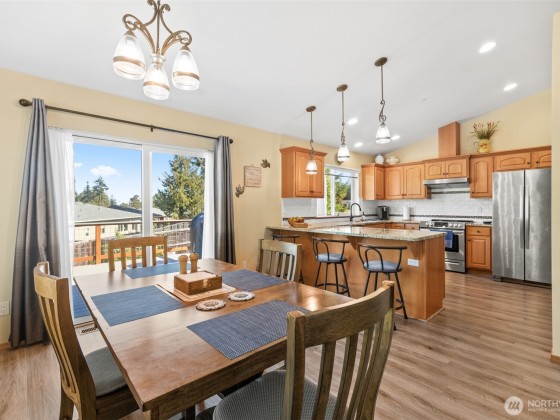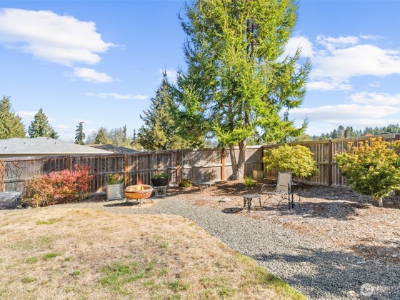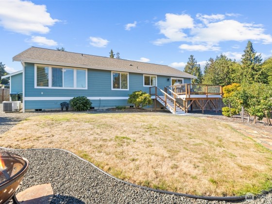 Beautifully maintained 3-bed, 2-bath rambler with 1,647 sq ft of comfortable living. This home features an open, light-filled layout with granite countertops, tile backsplash, and heat pump for year-round comfort. The spacious primary suite includes a soaking tub, double vanities, and a separate walk-in shower. Enjoy the outdoors with brand new PVC decks, a fully fenced backyard, firepit area, and thoughtful landscaping that includes pear, blueberries, raspberries, and strawberries. Situated on a large corner lot near the Discovery Trail, this property also offers plenty of space for hobbies and storage with a 2 car attached garage & an additional garage or shop. A true blend of comfort and convenience. Don't miss this move in ready gem!