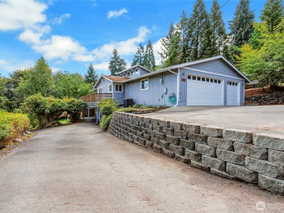 This daylight basement home is nestled in the peaceful Scott Lake community and features stunning vaulted ceilings, stylish updates from 2011, with a light-filled kitchen, large deck. It's ideal for multigenerational living with a private ground-level entrance (entry available on both levels), the lower level has a kitchenette, an extra finished room, a spacious lower-level family room, patio, and a 3-car garage. The sale includes an adjacent vacant lot, with water available on both parcels. Endless possibilities—build a shop, add a tiny home, or create RV parking (buyer to verify with county). Scott Lake offers a community center, golf course, and fishing opportunities in the lake. (New roof 8/27/25)