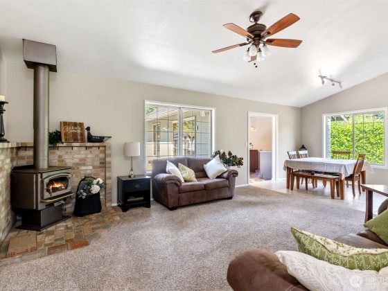 Filled with character and thoughtful details, this home features vaulted ceilings, skylights, and an abundance of natural light. A gas and wood stove create a cozy atmosphere, while the bar adds a perfect touch for entertaining. The open flow between the kitchen, dining, and living areas makes gatherings effortless. Step outside to relax around the outdoor fire pit or envision your own hot tub with wiring already in place. Surrounded by a peaceful setting, this property combines comfort, charm, and functionality, offering a space you’ll love to enjoy in every season.