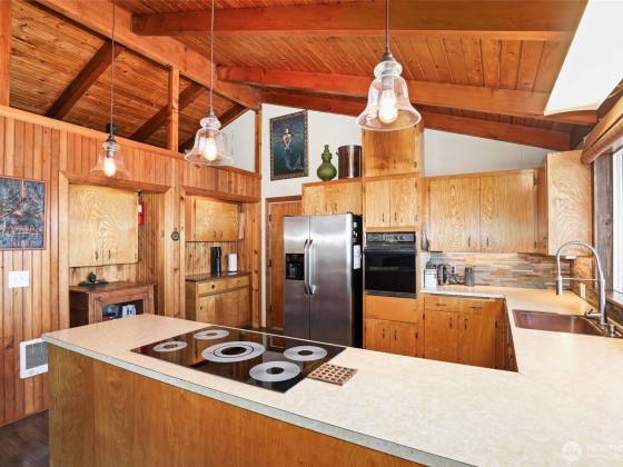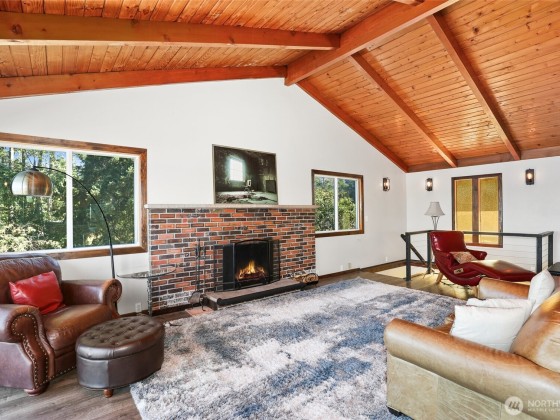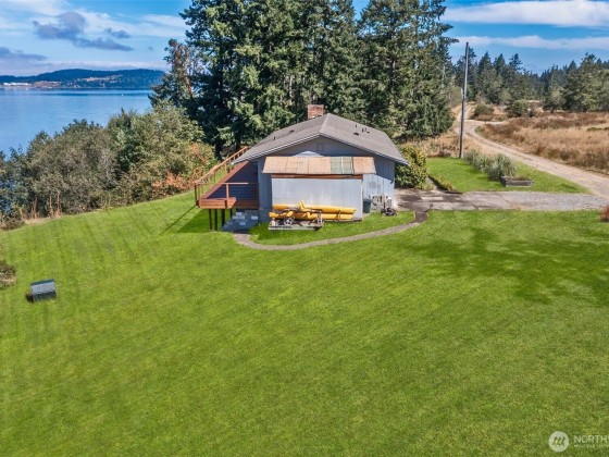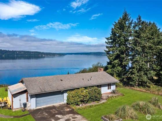 A rare chance to own a stunning home on Ketron Island with breathtaking water and mountain views! Perched on nearly an acre, this property features an expansive deck and covered porch—perfect for soaking in the sunsets. Enjoy panoramic water views from every west-facing window. The main level offers an open-concept layout with vaulted ceilings, a bedroom, and a ¾ bath. The lower level includes two spacious suites—one with a full bath and fireplace, the other with an accessible ¾ bath—plus a large bonus room, laundry room, and access to a covered patio. Attached 2 car garage, staircase with landing can be rebuilt for direct beach access. Just a short ferry ride from Steilacoom—don’t miss this island retreat and create your own sanctuary.