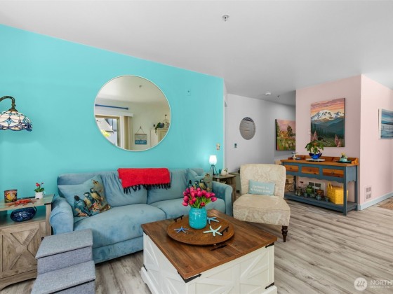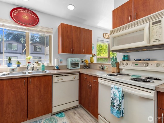 Located minutes from downtown Edmonds, the future light rail, and Alderwood’s amenities, this corner unit at Turnberry Lane is ready for its next chapter! The luminous, single-level layout boasts south-facing windows that fill the open living spaces with natural light, a cozy gas fireplace, in-unit laundry, and two generous bedrooms, including a primary suite with a walk-in closet and ensuite bath. A private balcony, rental-free community, friendly neighbors, elevator access, and secure garage parking complete the package. With trails, a golf course, shopping, dining, and parks nearby, enjoy the best of the coveted Edmonds lifestyle!