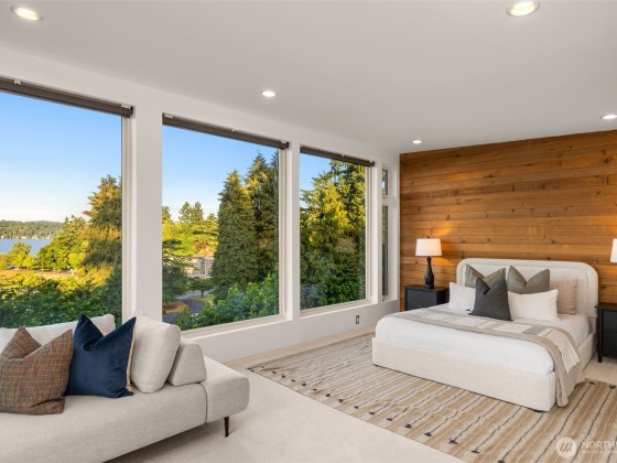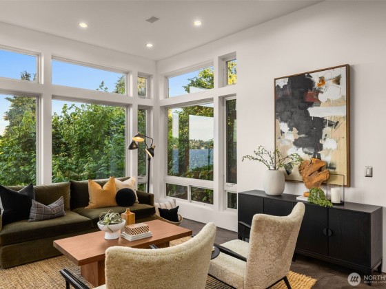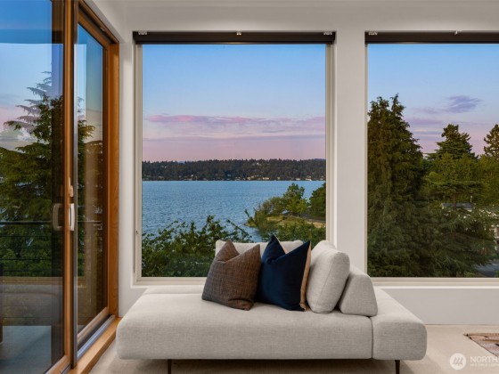 Spectacular Lake Washington view home just steps from the shoreline! Thoughtfully remodeled down to the studs, this home features floor-to-ceiling windows framing panoramic lake, city, and mountain views. The main level features milestone flooring, a gas fireplace, bed/bath, and a view deck ideal for entertaining. Upstairs, enjoy an expansive deck with unobstructed views, versatile flex space, and a luxurious primary suite with a 5-piece bath and custom walk-in closet with a washer/dryer. The lower level includes a media room, bed/bath, wine cellar, and private entrance— MIL/ADU opportunity. Experience lakeside living in this desired location near Genesee Park, Lakewood Marina, Seward Park, trails, shops, cafes, Seafair and so much more!