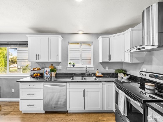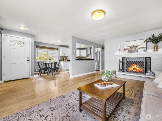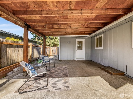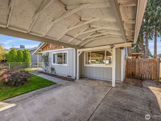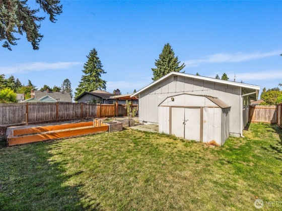 Centrally located in Tacoma just minutes to amenities sits this 4 bedroom 2 bath rambler that has been beautifully updated! Open concept living w/ recently remodeled kitchen + dining area that seamlessly flows into the spacious living rm w/ wood burning fp. Enjoy a smart layout w/ 2 bedrooms + full primary suite + second spacious primary suite complete with an full bath offering dual access from the bedroom/hallway - perfect for multigenerational living or guest privacy. Fully fenced backyard w/ large covered patio perfect for entertaining, raised garden beds, storage shed, carport + cement pad providing parking or future garage plans. Additional features: freshly cleaned roof + fireplace, all appliances convey, turn key!