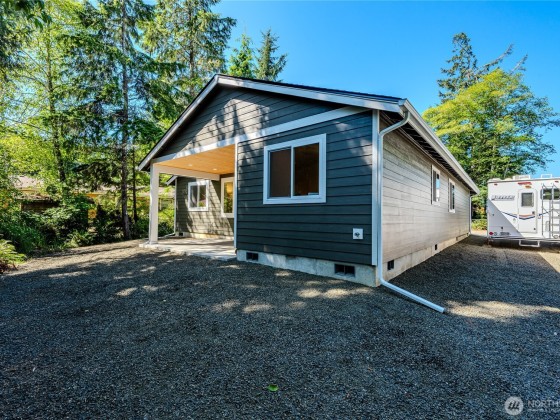 Newly completed and move-in ready! This stylish home features designer finishes like striking fireplace wall, mixed metal hardware, and standout lighting—including under-cabinet accents in both baths. Thoughtful storage with abundant cabinets and shelving. Located near North Bay Park with fishing, playgrounds, and boat launch—perfect for outdoor lovers. This is the where the fish are released every year. It's common to pull out a 2-4lb trout with the right gear. Just minutes from downtown yet tucked away from tourist traffic. Bonus: Room for your RV! Your guests wanting extra privacy or on an extended stay. This home was designed for ideal full-time living or for your coastal getaway.