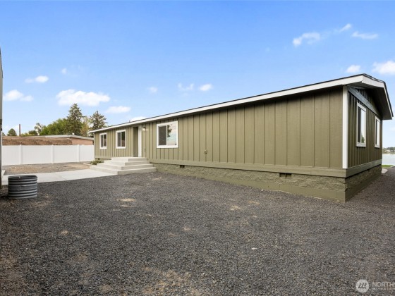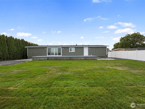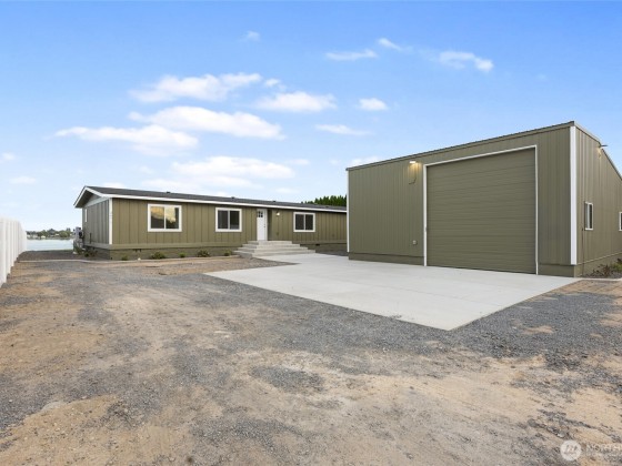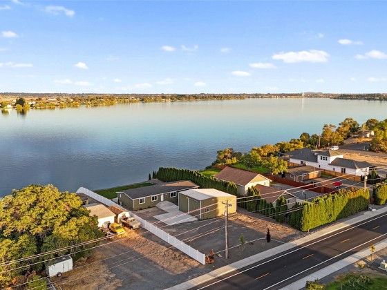 Turnkey 3-bed 2-bath 1809sq/ft home with shop including eastern exposure lakefront on Westshore Dr. in Moses Lake. Exterior features include 1080 sq/ft shop w/ 14' door and mezzanine for storage with new siding/windows/paint. Curbing, landscaping, and irrigation in front and backyards. Concrete raised back patio, switchback with block wall leading to grassed area at waterfront with dock. New vinyl fencing from top of property down to waterfront, additional boat/RV parking, and more. Interior features include laminate flooring throughout entire home, white shaker cabinets with quartz countertops throughout, stainless steel appliances in kitchen, sliding glass door to shaded back patio area. New HVAC system, plumbing and electrical fixtures.