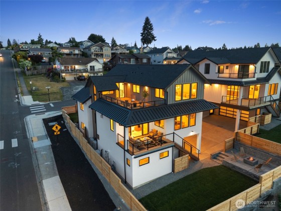 Come see this Brand new Luxurious custom build in the heart of Ruston. This home is 5 Bdrm 3.5 bath with an office on the main! Open concept floor plan w/ luxury engineered flooring throughout the home, beautiful gas fireplace in the living room area, designer kitchen w/ SS appliances, quartz counters & large island, heated tile throughout the bathrooms, Primary bedroom with a breathtaking view of the commencement Bay, its own 5pc bath with walk-in closet, 2 car garage, covered outside deck with fully fenced yard, additional deck on 2nd floor. Professionally designed landscaping with irrigation front and back yard, located just minutes away from Point Ruston, Point Defiance park, beaches, coffee shops, waterfront market and more.
