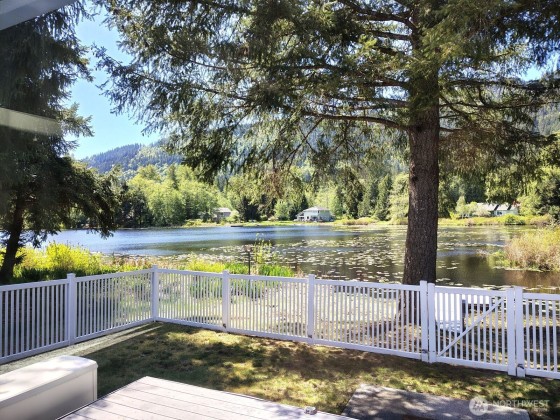 Delightful home has been recently updated with new flooring, carpeting, and fresh paint. Fenced back yard with large deck overlooking the lake and private dock. Heat pump keeps it cool in the summer and warm in the winter. Cozy gas fireplace and auto start/transfer hardwired generator will keep you warm even during a power outage. New stainless steel kitchen appliances and granite countertops. Master suite with double closets, master bathroom, and deck access. Serene country living and yet just minutes from I-5. Within easy commuting distance to either Bellingham or Burlington.
