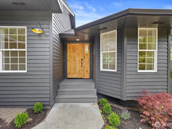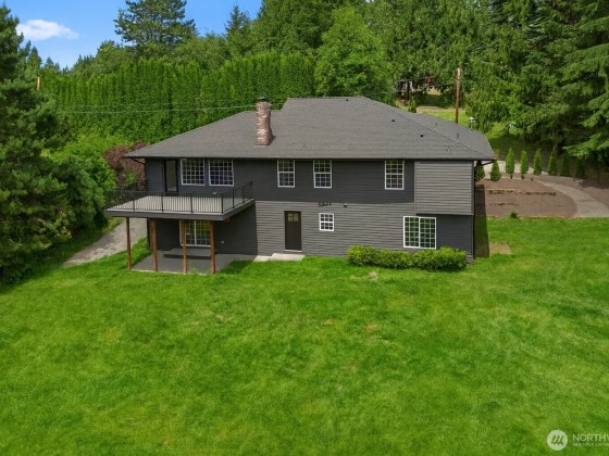 Stunning home on 5+ cleared & wooded acres – completely refreshed inside & out. Designer kitchen featuring massive island with built-ins, shaker cabinets, quartz counters, & perfect breakfast nook. Seamless open floor plan showcases large picture windows & vaulted ceilings. Primary on main boasting luxurious 5-piece bath & walk-in closet. Mother-in-law suite/apartment with additional kitchen, huge living space, bonus room, full bath, & two oversized bedrooms. Trex deck overlooks sprawling backyard. All high-end materials used throughout including engineered hardwoods, tile, & designer lighting + hardware. Tons of driveway parking & RV parking on side of home + plenty of room to build a detached shop. Powerful dual zone forced air. New roof.