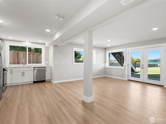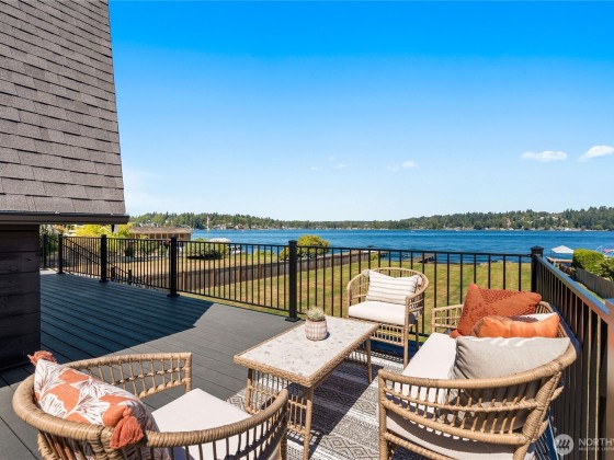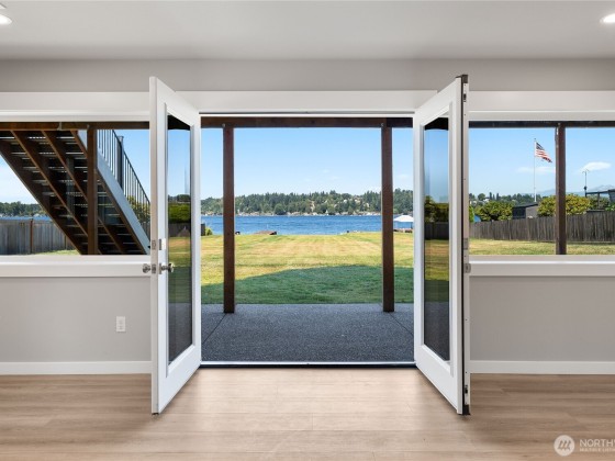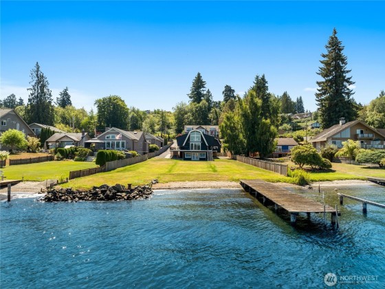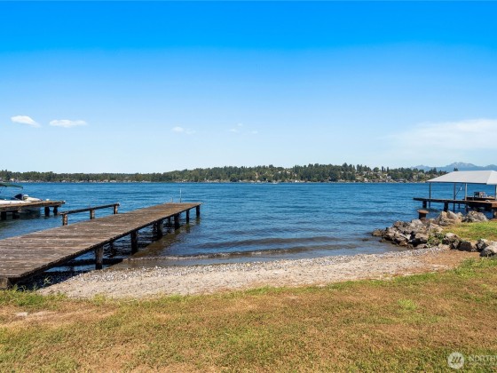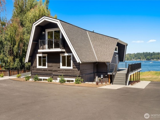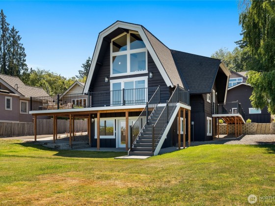 [NEW DOCK] Just under half an acre with 75 feet of pristine waterfront, a sandy beach, and sweeping views of Lake Stevens and the North Cascade Mountains. Completely remodeled from the studs out, this 4-bedroom, 3-bath home blends modern luxury with thoughtful design. Inside, has two full kitchens, spacious living areas, and plenty of storage, perfect for multi-generational living or hosting guests in style. Has AC for year-round comfort. The level lot offers irrigation, detached garage, RV parking, Tesla charging station, and a ramp for easy, no-stairs entry. Whether you’re enjoying a morning coffee by the water, hosting summer barbecues, or watching sunsets over the mountains, this property delivers the ultimate lakefront lifestyle.