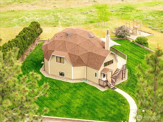 This stunning Geodesic Dome Home captures flawless design & quality throughout! This 4 bd, 2 bth home offers 2,714 sq ft of thoughtfully designed living space on 19.63 acres. The family room is filled with natural light and centered around a cozy wood burning fireplace. The open kitchen offers generous cabinetry, pantry and a workstation. Primary suite provides a peaceful retreat complete w/soaking tub and walk in shower. Recent upgrades include siding (22), roof, (21), water heater (19) and a high producing well delivering 100+GPM! Outside there is a spacious deck, 24' x 40' insulated 3 bay shop adds incredible functionality, with heated 8' x8' room and 70amp/240-volt power. Close to the Columbia river and nearby lakes.