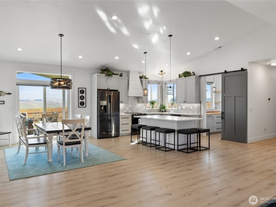 Built in 2021 & perched on 4.78 irrigated acres, this spacious custom home features luxe upgrades including an airy kitchen with quartz countertops, a butler’s pantry with built-in Monogram refrigerator, a touch faucet, under cabinet lighting, large island, 3 car attached garage, and more. Taking up 2,242 sqft of living space are 4 bedrooms, 1.75 bathrooms, an open concept kitchen with dining area that flows into the great room, and a utility room with a built-in dog wash. Through the sliding glass doors, you’ll discover the covered back patio looking over the fully fenced backyard with built in sprinklers and beautiful Badger Pocket views. Experience expansive country living without sacrificing modern comforts, schedule your tour today!
