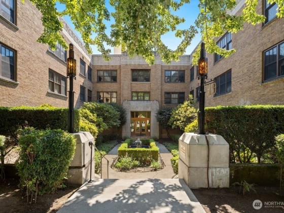Private and quiet unit in a fabulous building with an idyllic location within blocks of amenities, public transportation and the Seattle Center. Kinnear Park is your next door neighbor with 14 acres of green space, tennis/pickleball courts, walking trails, off-leash area and playground. This unit has charming original details left intact plus recessed lighting, and tons of storage, including a huge walk-through closet that could be repurposed as a separate bedroom or office. Lots of flexibility in how you choose to use this affordable condo in a pet friendly building that allows unrestricted rentals after one year of ownership. Unit conveniently on the same floor as the spacious and welcoming laundry and workout rooms.