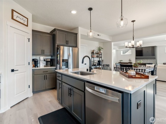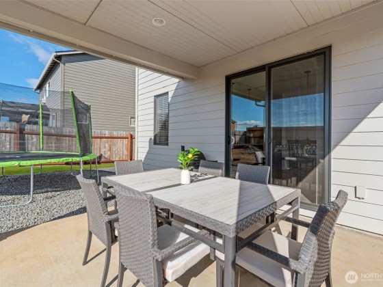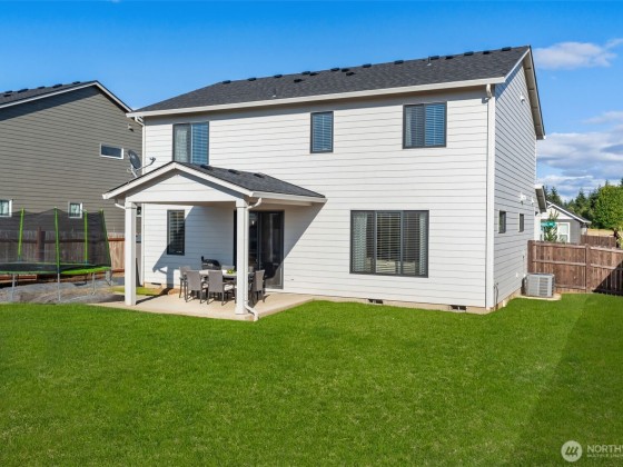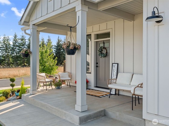 This beautifully maintained home sits on a spacious corner lot in a great neighborhood just minutes from schools, shopping, and I-5. Inside you’ll find thoughtful upgrades throughout including soft-close cabinetry, under-cabinet lighting, custom blinds, and an energy-efficient 80-gal water heater with heat pump. The open layout is enhanced by A/C for year-round comfort, while the sealed garage floor adds both durability and style. Outside, enjoy a covered patio with built-in lighting, custom landscaping and an elevated fence for extra privacy, perfect for relaxing or entertaining. The upgraded farmhouse-style front siding adds charming curb appeal, while the low-maintenance $8/mo HOA and low property taxes make this home a smart investment.