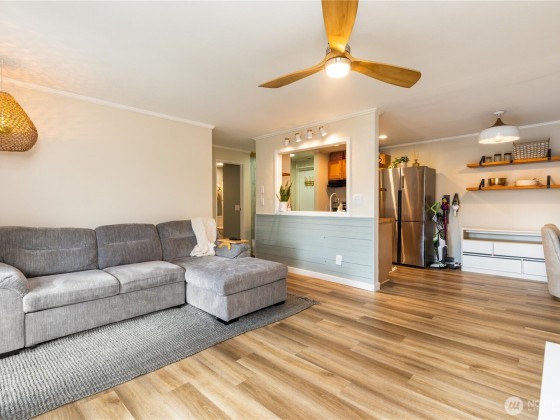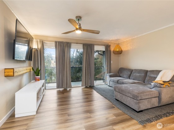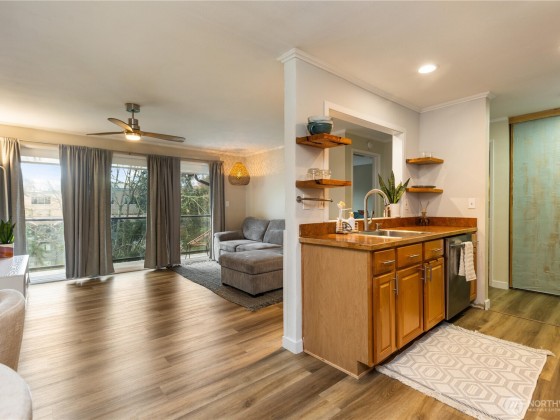 Welcome to your beautifully updated top-floor condo w/stunning views of Echo Lake from your spacious view deck. Bright, inviting fully refreshed 1-bed 1-bath home w/new vinyl floor, lighting & updated bath w/new tile & hardware. The kitchen shines w/a new fridge, dishwasher & stove. You'll love the convenience of the new in-unit washer, dryer & water heater. Step outside to your private dock w/beach access, swimming, kayaking, paddle boating. Stroll through gated park-like grounds & enjoy sights & sounds of nature. Echo Cove community offers a main lobby, game, billiards & rec room. Dedicated parking space, storage closet & bike storage. Quick access to shopping, transit, short drive to Northgate, Edmonds, Seattle, Ballard & light rail.