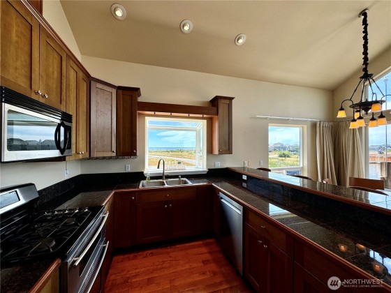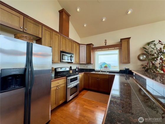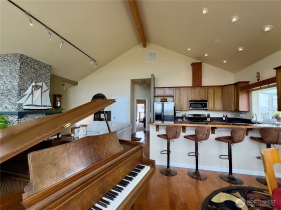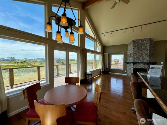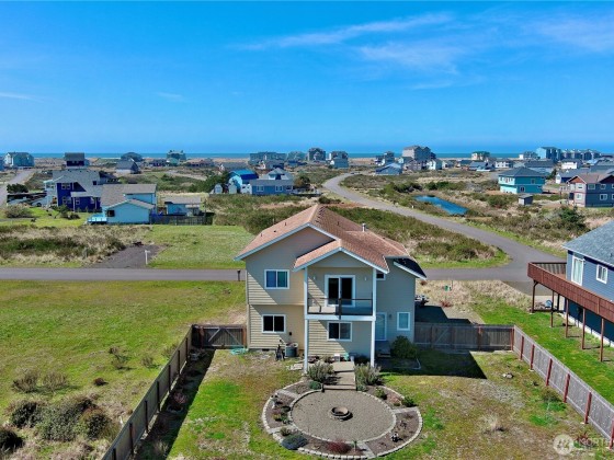 Captivating sunrises, sunsets & panoramic views of the mountains, ocean, bay & jetty! This spacious home boasts 10ft ceilings, hardwood floors, vaulted upper-level ceilings & a stunning custom river rock fireplace. A dramatic wall of windows frames the sweeping scenery & fills the home w/natural light. 4 bedrooms (2 up, 2 down) & 3 baths (2 up, 1 down), there’s space for all. Enjoy an oversized garage, central vacuum, heat pump/furnace, RV parking & newer exterior paint. Relax on the expansive front deck taking in stunning sunsets or the covered deck off the primary suite w/Mt. Rainier, bay & sunrise views. Fully fenced backyard features an extraordinary circular fire pit—perfect for unforgettable nights under the stars.