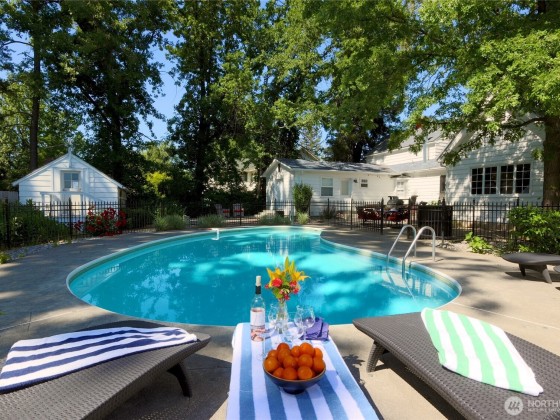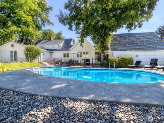Charming Cape Cod-style home blocks from downtown Walla Walla, fully licensed as a Type 2 VRBO! This beautifully maintained property features a sparkling gunite swimming pool and a spacious primary suite with an ensuite bathroom. French doors in the primary bedroom open to the serene rear patio and pool. The home boasts fresh exterior paint, a separate dining room, and an upgraded kitchen with a high-end gas range, oversized dual oven, and built-in wine fridge. The main floor includes a bright rec room with a cozy window seat, while the basement bedroom offers a legal egress window. Filled with character and natural light from divided light windows. Ideal as a primary residence or vacation rental.