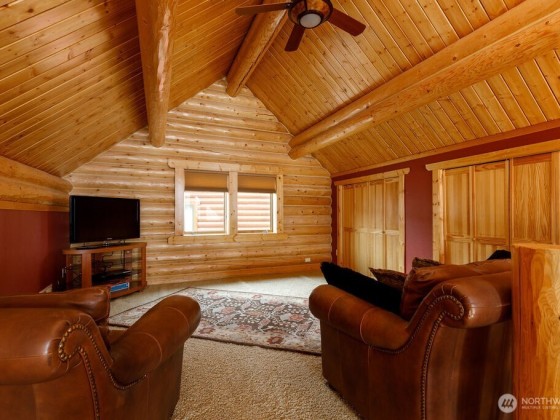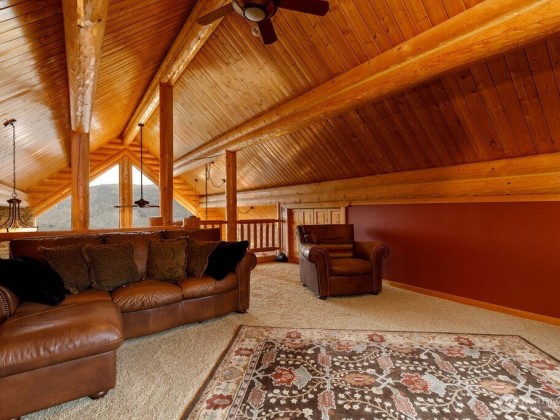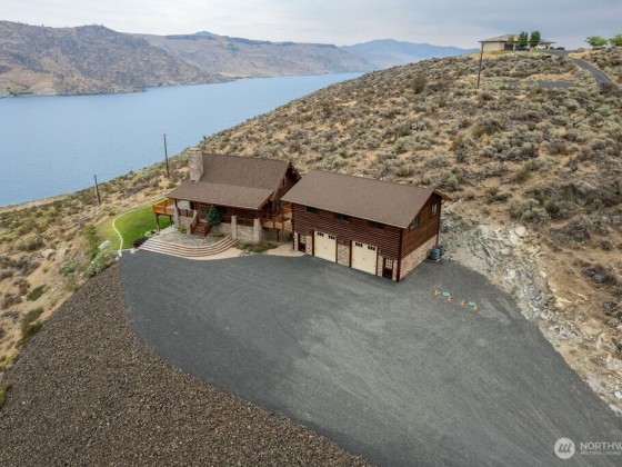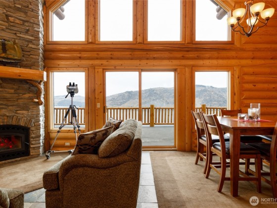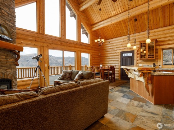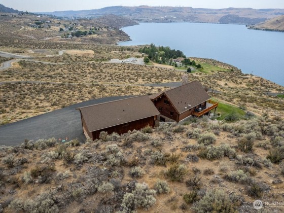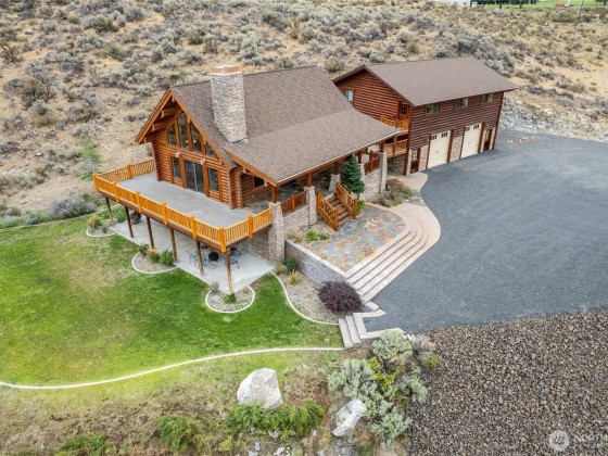 Breathtaking lodge style log home with sweeping Lake Roosevelt views! Built in 2009 from lodgepole pine and Engelmann spruce, this 3 bed, 2.5 bath in the main house and 2 bed 1 bath in the detached ADU - main house features 21’ vaulted ceilings, an open kitchen, main floor master, loft bedroom, and a daylight basement with another livingroom and wet bar. The 2011 detached shop includes the 2 bed, 1 bath ADU with its own HVAC perfect for guests, rentals or multi gen living. Whether full time, vacation, or investment, this property combines rustic beauty with modern comfort.