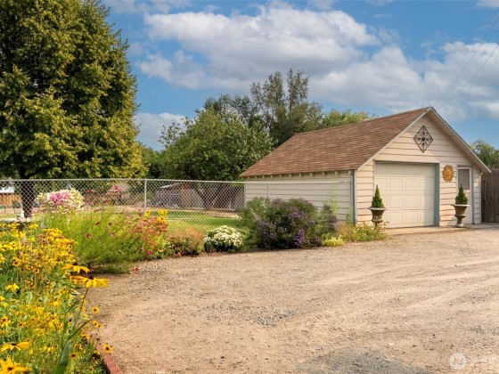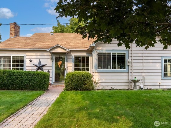 Step into seamless living in this lovingly maintained & updated 1948 gem, where pride of ownership shines throughout. This 3-bed, 1-bath home offers tranquility & character in equal measure. The large picture windows flood the space w/ natural light! SS appliances- 2 wood burning fireplaces. Step outside to a covered patio that opens to a flat, manicured, park-like double lot with mature landscaping—ideal for entertaining or peaceful solitude. Private well w/ sprinkler system serves outside & city water serves the house. A 1-car garage, massive 4-bay shop & tons of parking provide room for all your hobbies & vehicles, making this property a rare find that blends character, convenience, & space in one inviting package.