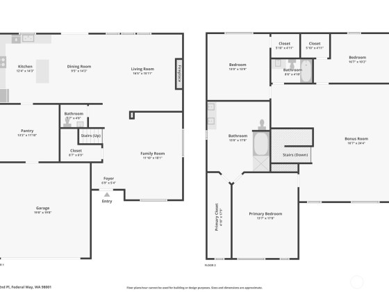 Welcome to this well-maintained 3-bedroom, 2.5-bath home with a huge bonus room—perfect for a second living area, office, playroom, or guest space. Located in a friendly Federal Way neighborhood with a community park, this home offers easy access to The Commons Mall, popular restaurants, and the upcoming light rail station. Commuters will love the quick access to both Seattle and Tacoma. Spacious layout, great location, and move-in ready—don’t miss this opportunity!