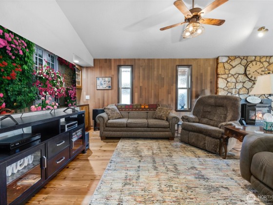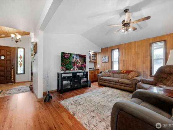 Wonderful rambler with quality touches throughout! This large 3 bedrm, 1.75 bath home features a new roof, updated windows, new gas furnace, hardwood floors, tile floors in kitchen & bathrms. Very open floor plan. Large Family rm w/fireplace & pellet insert, big living rm w/vaulted ceilings. Kitchen updates include new stainless steel appliances, granite counter tops, tile backsplash, garden window, new sink & fawcet, pantry with pull outs and more! The bathrms have both been completely updated as well. Large Primary bedrm w/on suite bathrm. The yard is fantastic! Garden areas, beautiful landscaping,lots of parking & out building for extra storage. Big 2 car garage w/ storage! Great location close to shopping, I-5,clinics,airport & more.