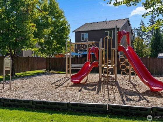 Welcome to easy living in Navarro, inside sought-after Gem Heights in Puyallup! This beautifully maintained 4-bed, 2.5 bath home has a perfect flowing layout. The open & bright living room flows seamlessly into the dining area & kitchen for easy everyday living & fun entertaining opportunities. The kitchen's island/peninsula fits stools for casual dining. Stainless appliances keep it classy. Upstairs, you will find your primary suite w/attached bath & walk-in closet. Three more spacious bedrooms, a full hall bath, & convenient upstairs laundry complete your new home. A slider off your dining area leads to a fully fenced, low-maintenance backyard w/patio. Don't miss the park right behind! Just minutes from shopping, dining, & commuting!