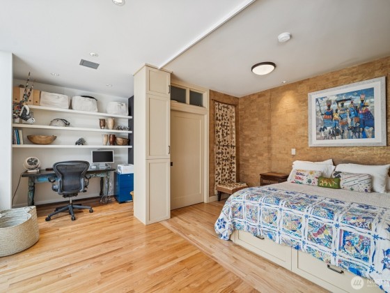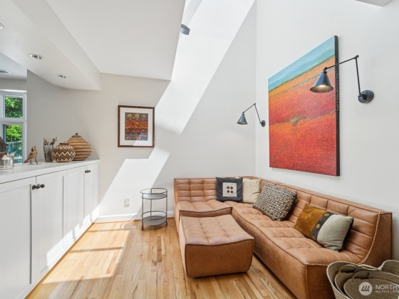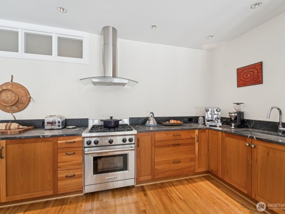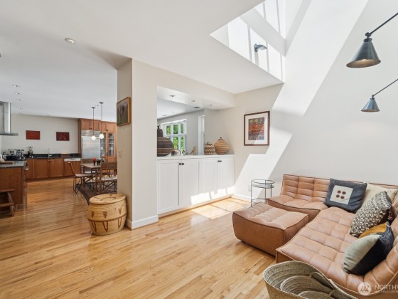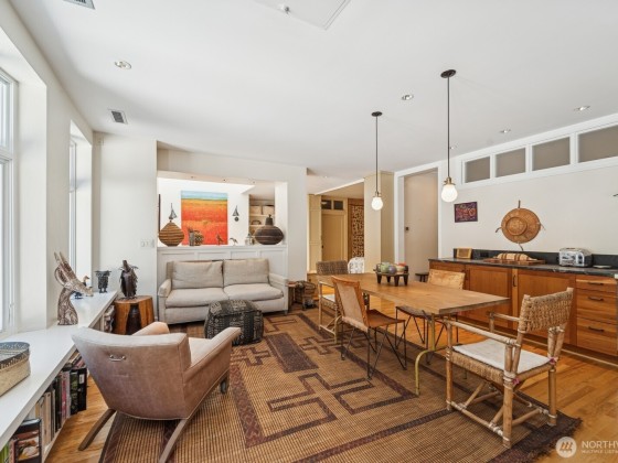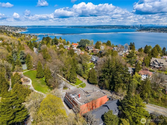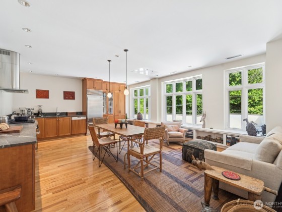 Designed & built in 1930 by renowned architect John Graham, this boutique 8-unit Art Deco building offers timeless character & rare exclusivity. Perched above Mt. Baker Park, this stunning home boasts sweeping urban green views & a flexible floorplan featuring custom built-ins, office nook, spacious walk-in w/custom cabinets, & tall ceilings incl a ridge triangular skylight that floods the space w/natural light. The kitchen is a showstopper, remodeled w/abundant cabinetry, soapstone counters, & premium appliances incl a Wolf range, Miele dishwasher, & Sub-Zero fridge. The location in the scenic Mt Baker neighborhood is unbeatable, steps from MioPosto, a Pilates studio, parks, Lake WA & more, w/quick access to Light Rail/transit. 1Prkg/1Strg