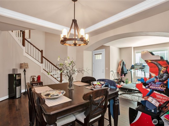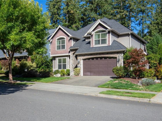 Step into luxury in this extraordinary home in the coveted Meridian Campus Community. Situated on the 3rd tee of the golf course, this lovely home features vaults, formal living, dining, and family room with extensive custom woodwork. Gourmet kitchen features custom cabinets with pull out sliding drawers, granite counters, SS appls, island, adjacent butler's pantry w bev fridge and it's own pantry! Family room has soaring ceilings, gas fp and a wall of windows for plenty of light. Primary features soaking tub, lg shower and huge walk-in closet. 3 other bedrooms complete the spacious upstairs. Backyard features large covered area, extensive landscaping for privacy. Lg tandem 3 car garage complete this package. Close to I-5.