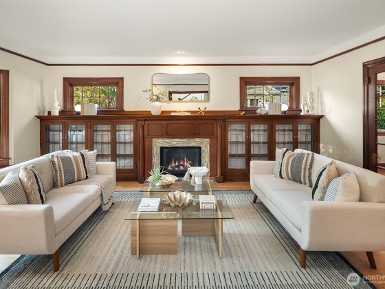 Four stories of true craftsmanship on a coveted block in Bryant. Reimagined in 2009, you’ll find features from the original 1926 Tudor blended with modern comforts in a functional layout. The richness of high ceilings, radiant heated floors and warm wood tones carries throughout. A chef’s kitchen anchors the living space of the main floor while the second floor holds the primary suite, 2 beds, a full bath, laundry and sitting room. Top floor has surprising views, 2 beds, a bath and moody sunsets from the balcony. Lower level could quickly be converted to an ADU; don’t miss the hidden wine cellar. Comfort abounds with 2 gas fireplaces, A/C, and solar. Fully fenced backyard and heated garage. Walkable to cafes, shops and highly rated schools.