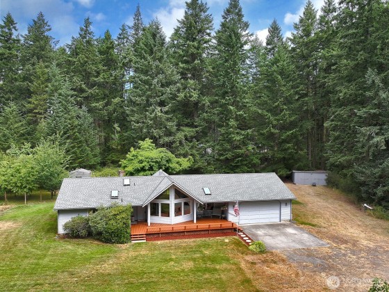 Escape to a private oasis located on 4.85 acres in Central Whidbey Island! Lush setting w/ border of fir, maple, madrona & alder trees tuck you in to your homestead. Single story floorplan has open living great room, 3BR, 2 Baths plus spacious deck & patio! Well maintained with 3 y/o roof (40 yr transferrable warranty), fresh interior paint, ductless mini split & revamped crawl space! 2 car garage plus ample storage! 24x24 storage shed for yard equipment. 10x20 & 12x12 greenhouses with irrigation and fenced garden area. Enjoy apples, pear, filbert, cherry, plumb, peach, apricot, & rhubarb...a gardener's delight! Off street parking for cars, boat or RV! Forever home on acreage awaits! $6500 Seller Paid Flooring Allowance toward new carpet!