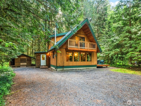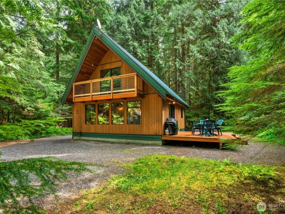A fully furnished mountain retreat in Glacier Foothills: Nestled in a sought-after gated snowline community, this cabin combines rustic charm with modern comforts. Kitchen features bamboo flooring, stainless steel gas range with hood, & beautiful light-toned cabinetry that blends seamlessly with the home’s cozy atmosphere. Living area anchored by a gas fireplace, perfect for relaxing after a long day on the mountain. Step onto the back deck to find a hot tub among the evergreens. This home offers year-round tranquility. Located 25 minutes from Mt. Baker Ski Area and renowned hiking trails. HOA Includes: clubhouse, pool, tennis/pickleball courts, & playground, making it a versatile retreat for full-time living or an investment opportunity.