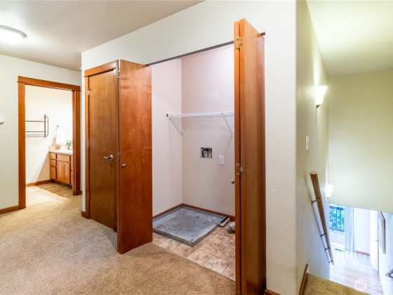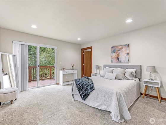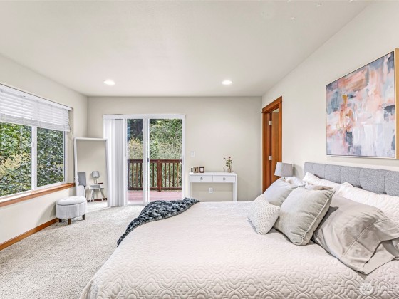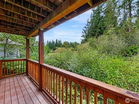 Backed by green space and Lake Louise, this Sudden Valley home sits in a peaceful setting with direct access to one of the area’s most scenic walking trails. Hardwood floors, stainless steel appliances, and an open main-floor layout create a warm and functional living space. All bedrooms are located upstairs, including a spacious primary suite with a large bathroom and walk-in shower. Air conditioning ensures year-round comfort, while the sounds of birds and views of the lake add to the charm. With easy access to nature and resort-style amenities, you'll feel like you're on vacation every day. Community amenities include two swimming pools, a golf course, parks, playgrounds, pickleball courts, a marina, Lake Whatcom access, and more.