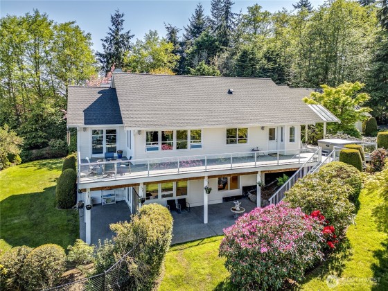 This estate-quality property has it all: a beautiful custom home with a view, fenced and gated grounds reminiscent of Buchart Gardens and a private location just 15 minutes from shopping, world-class golf, beautiful beaches and trails. Set on 3+ acres with sandy loam soil that will grow most anything including grapes! The light-filled home offers gracious and flexible living. Enjoy main level living with room for an in-home business and/or mother-in-law quarters. Radiant floor heating throughout. You’ll find a heated garage, workshop and covered RV/Boat storage with power and water. Wrap around composite deck, patios, secret gardens, and a fenced orchard/garden complete the estate. Licensed for a kennel.