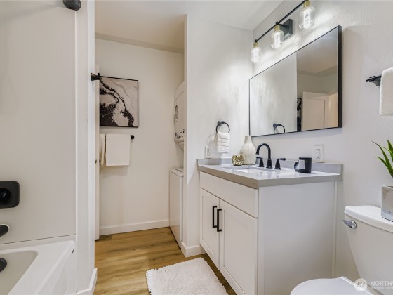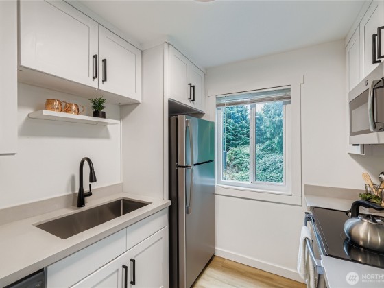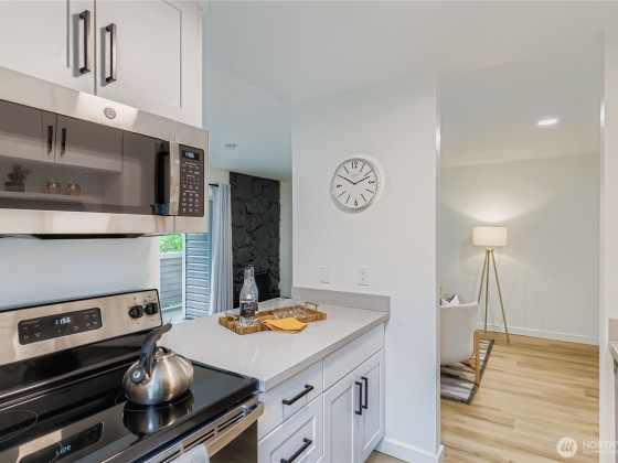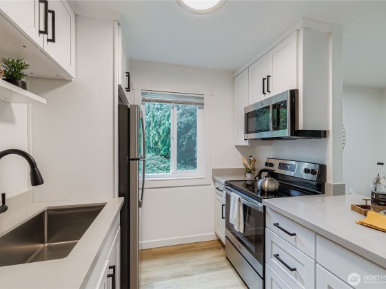 A dream location to live or own on the Eastside! Salish Village is situated next to all the shopping, dining & fun of the Village at Totem Lake, w/ easy access to the rest of Kirkland right at your doorstep. This beautifully remodeled unit has been refreshed from top to bottom w/ fresh paint & new flooring, trim, appliances, water heater, counters, cabinets, lighting & bathroom - just turn the key & move in! The efficient layout lives larger than its sqft & fills w/ light all year. Abundant storage b/w the huge pantry & a walk-in closet. In-unit laundry & private deck! Well-run HOA w/ manageable dues, no rental cap, ample guest parking & great amenities like a pool, hot tub & EV chargers. 2 PARKING SPOTS!!