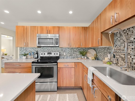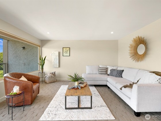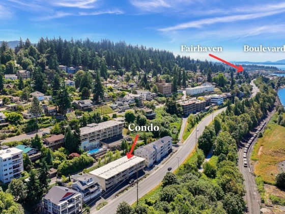 Modern and updated 2BD/1BA condo ideally situated between Fairhaven and downtown Bellingham. Enjoy easy access to Boulevard Park, WWU, the Farmers Market, trails, and more—perfect for walking or biking everywhere. This 999 SF home features an open layout, updated kitchen with stainless steel appliances, washer and dryer in unit, a spacious primary bedroom plus a versatile second bedroom or office. Relax year-round on the covered patio with water views and never ending sunsets. Low HOA dues and great building amenities—including an outdoor pool—round out this exceptional condo. Don't miss this one!