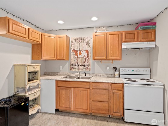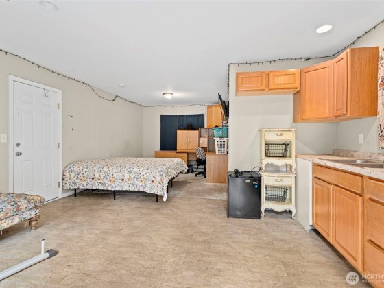 Beautifully updated 3 bed, 2 bath home on a full acre! Features include an open floor plan with vaulted ceilings, fresh interior paint, new LED lighting, and walk-in closets in every bedroom. Renovated bathrooms and an updated kitchen with stainless steel appliances and granite countertops. Enjoy a variety of fruit trees including apple, peach, and cherry. Property includes a permitted 404 sq ft detached studio unit with its own kitchen and bath—perfect for rental income or multigenerational living. Spacious detached 2-car garage, small shed, and newly built deck. Just 30 minutes to JBLM!