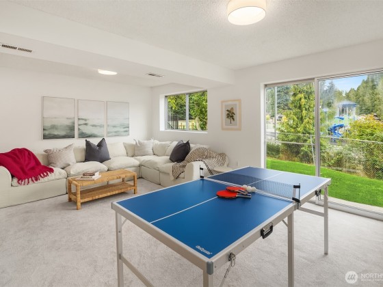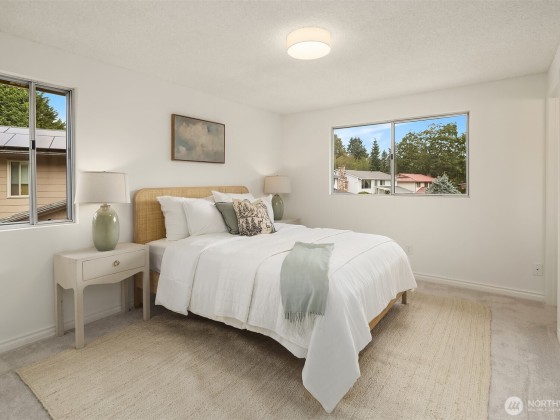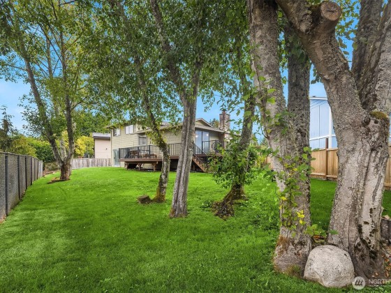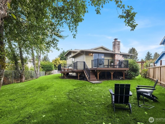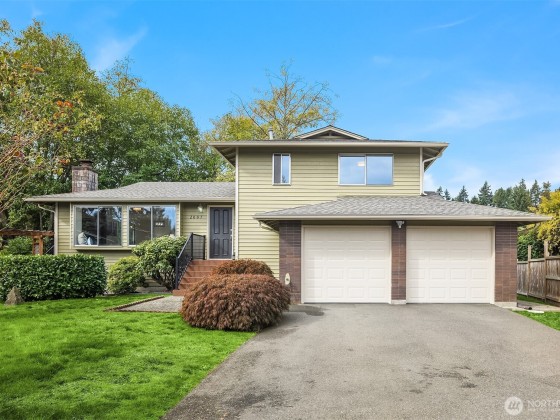 Tucked at the end of an inviting cul-de-sac, this contemporary tri-level offers space, updates & convenience. Light-filled living spaces feature a brick fireplace & a substantial bay window that opens wide to bring the outdoors in. Sliding glass doors extend the dining area to a spacious deck overlooking the backyard, perfect for gatherings. The sweet kitchen enjoys garden views & easy flow to the main living area & outdoor deck. Upstairs offers a primary suite with ¾ bath & 2 additional bedrooms with a shared full bath. The lower level provides flexible space with laundry & outdoor access. Two-car garage & beveled cedar siding. Close to parks, schools, groceries, I-5 & upcoming light rail. This home is move-in ready & pre-inspected!